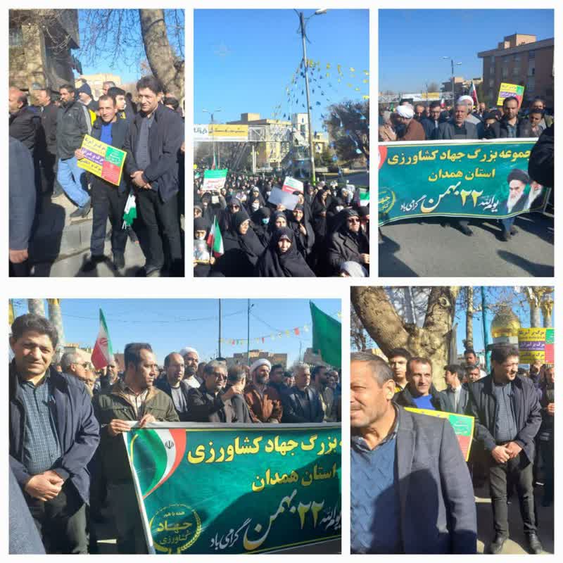 حضور مدیر و همکاران امور عشایر استان بهمراه مجموعه بزرگ جهاد كشاورزي استان همدان در راهپيمايي۲۲ بهمن امسال بصورت يكپارچه.